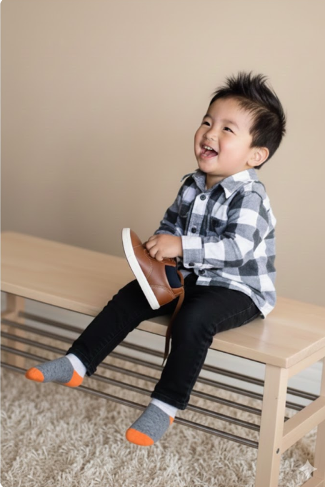 段差があると自分の体重で足を靴の奥まで滑らせる事が出来、自分で靴を履くことが出来るからです。