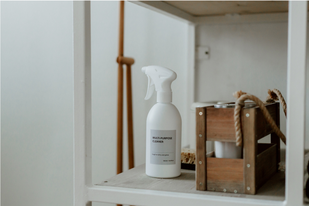 また、中には可動式の棚が設置されているので、掃除機やモップなどを仕舞う段は大きく取り、上の方の棚には子供が触ると危険なスプレー類の掃除用具をしまうことが出来ます。
